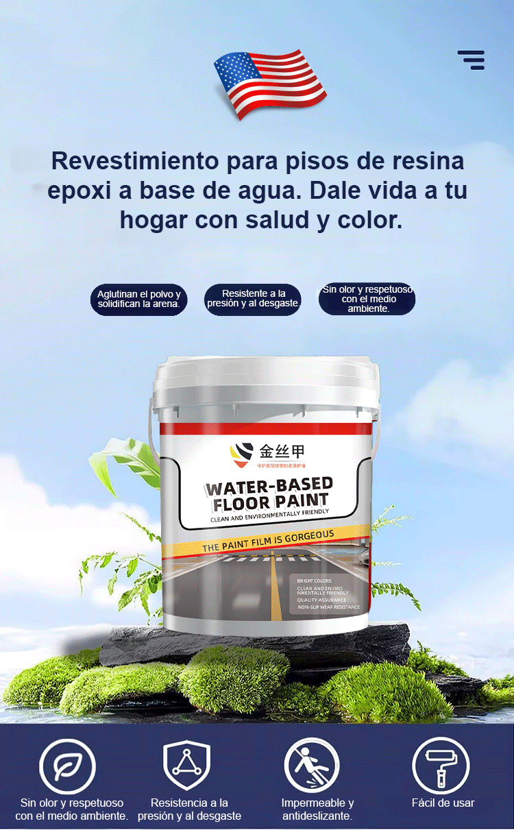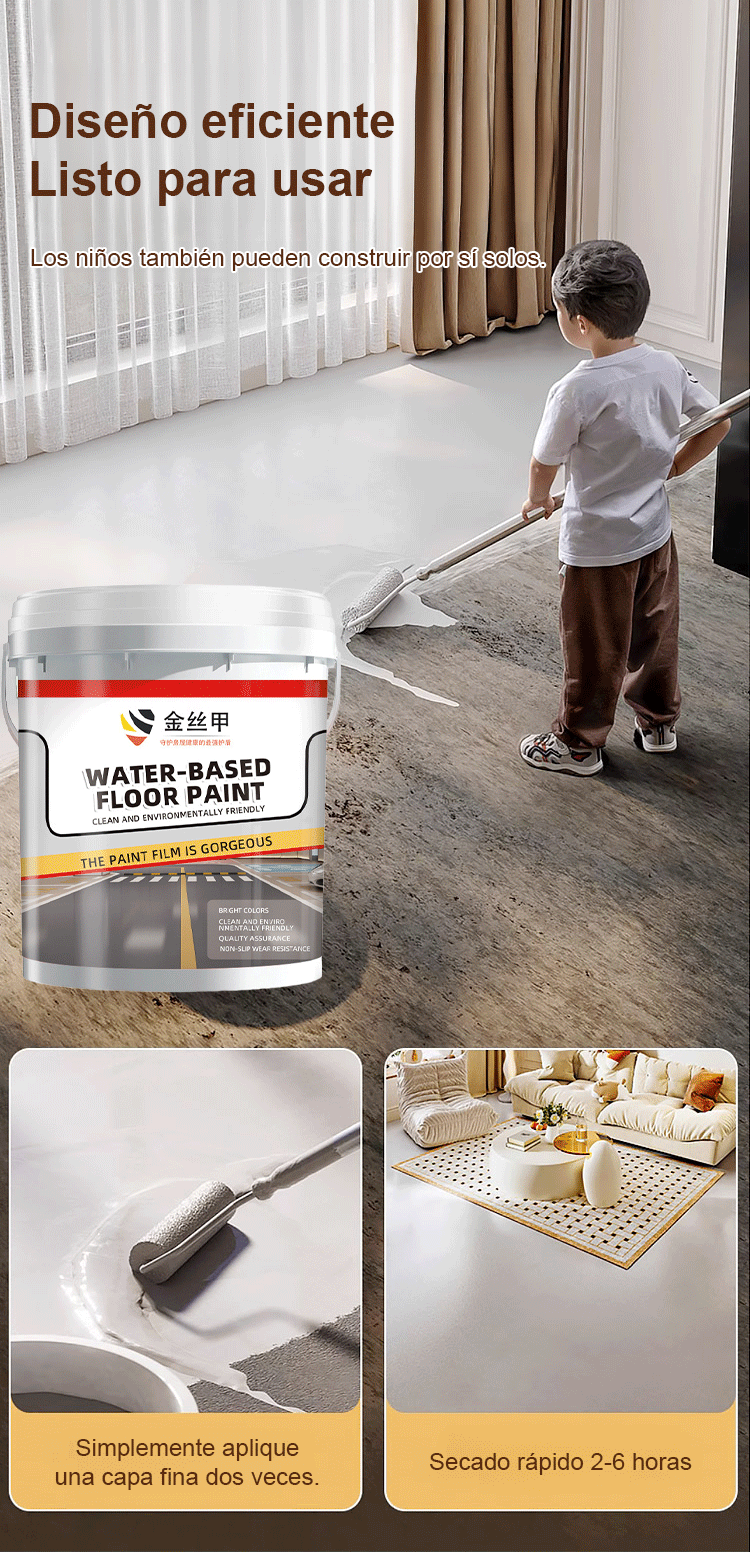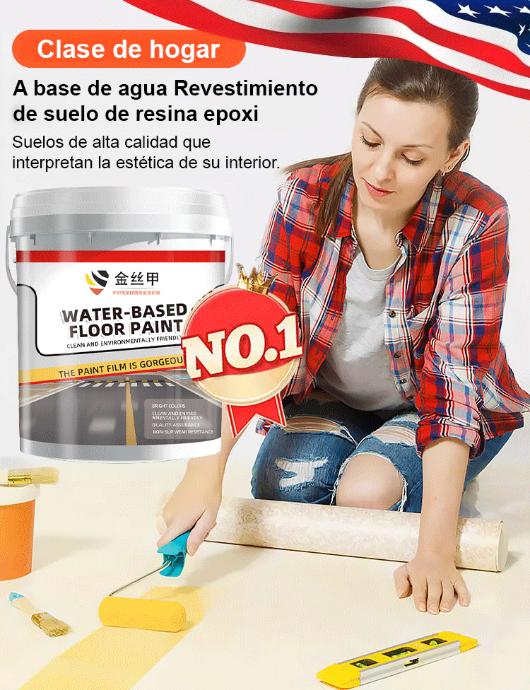 【Super resistente al desgaste】Pintura epoxi para suelos a base de agua con armadura de hilo dorado -